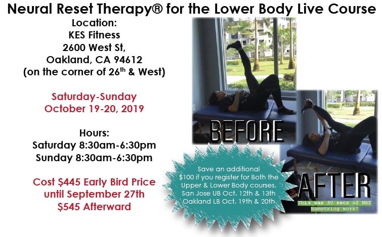 Neural Reset Therapy® Lower Body Live Course in the Bay Area for the first time ever! Event Date: Saturday and Sunday, October 19-20, 2019 Time: 8:30 am - 6:30 pm both days CEUs available. NRT Trainings, LLC is approved by [...]